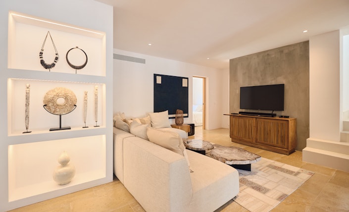 Located near San Josep on Ibiza's stunning west coast, this immaculate modern rustic villa offers a secluded retreat surrounded by lush mountains. Just minutes from the charming village of San Josep, where you’ll find supermarkets, ...